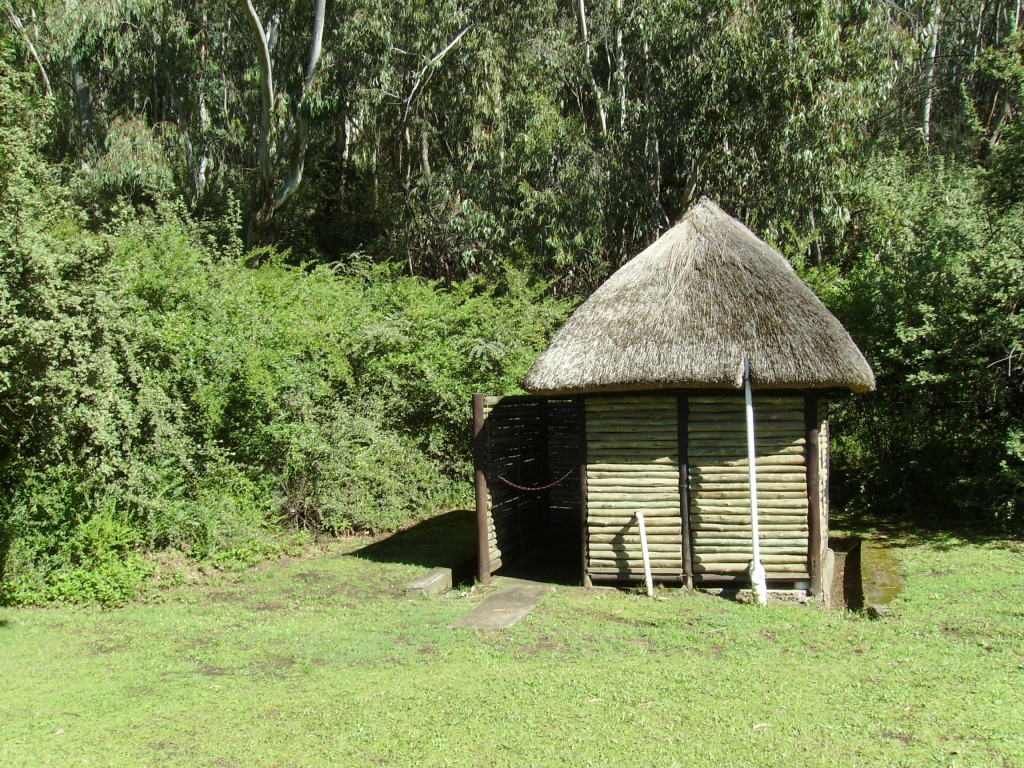 The one and only flush toilet, housed under a thatch roof in a quaint outbuilding, scores high for cleanliness and originality. Just mind your head though!