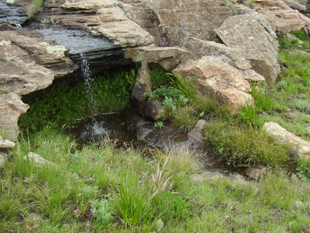 Bushman’s Nek Wilderness Area, lower southern Drakensberg.  There are two main routes to Tarn Cave, the first being via Bushman’s Nek Pass. After summitting the highest point on the pass, you will encounter a shipping container which might pass as a “border post” except there is no border guard there, just a watchman (sometimes) and a lot of litter. If you follow the jeep track round to the right behind the container, you will soon reach the border fence again, which you should then cross back into South Africa (the fence lies conveniently flat on the ground in places). If you can find your way to the largest tarn, you will pick up the path to Tarn Cave, which will now only be a few hundred metres away.