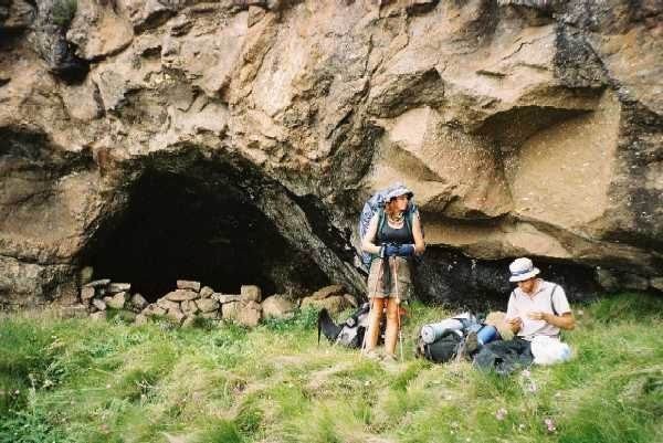 In the dry season this cave is perfectly comfortable. Being a true, tunnel-like cave, it has a cosy atmosphere. The floor is level and the cave is quite spacious. There is even a bench-like rock on one side to sit on. In summer the floor is very wet but it is still possible to sleep in it with the use of ground sheets. There are no major drips from the roof, only a low drip far back in a corner and another on the side near the front.