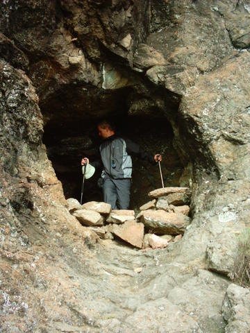 The western cave has a level floor and is quite cosy, but the roof is very low . There is storage space for backpacks at the back of the cave. The eastern cave is also tunnel-like, with a higher roof, but it is not as cosy as the first.