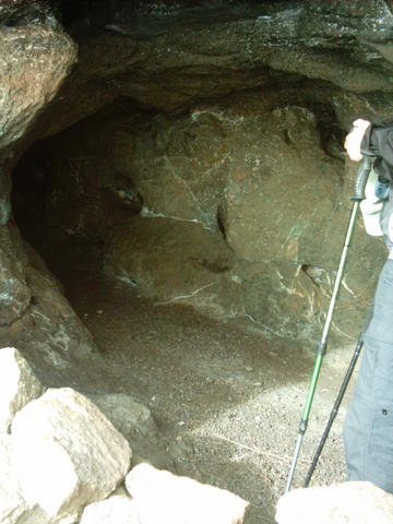 The western cave has a level floor and is quite cosy, but the roof is very low . There is storage space for backpacks at the back of the cave. The eastern cave is also tunnel-like, with a higher roof, but it is not as cosy as the first.