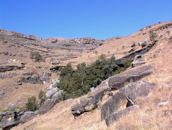 Cobham Wilderness Area, lower southern Drakensberg.  This cave is situated on the Giant’s Cup Trail above Ngenwa Pool.  The trail passes right through the cave, which offers a good lunch spot for hikers doing the section between Sani Pass and the Pholela Hut.  This also means that should you choose to stay over in the cave, you should not expect much privacy during high season.