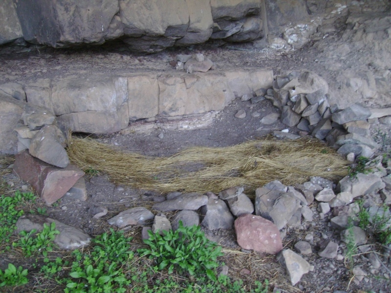 Rob’s Cave is situated high up the side of Hidden Valley, within a kilometre of Wave Cave.  Getting to it involves a strenuous climb up the hillside from the valley, although it can also be approached from above (e.g. from Whyte’s Cave) via one of two routes.  The more complicated of these routes descends to the left of the cave through a maze of intricate gullies, requiring a point man to go ahead and find the best and only workable solution, which includes boulder-hopping through tough riverine bush.  The easier option is to descend down the gully to the right of the cave. This gully is actually a continuation of the fissure that forms the northern Mzimude Pass. It is mostly covered in loose soil, and the sparse vegetation includes some unusual plant life. The catch is getting out of the gully into the cave. If you are nimble and enjoy climbing trees, there is a handy one up against the cliff face below the cave floor that can facilitate your arrival if you have the nerve for it. The alternative is to continue along the cliff face to the point where it reaches ground level, then climb back up the grass slope and enter your lodging in a more civilised manner!