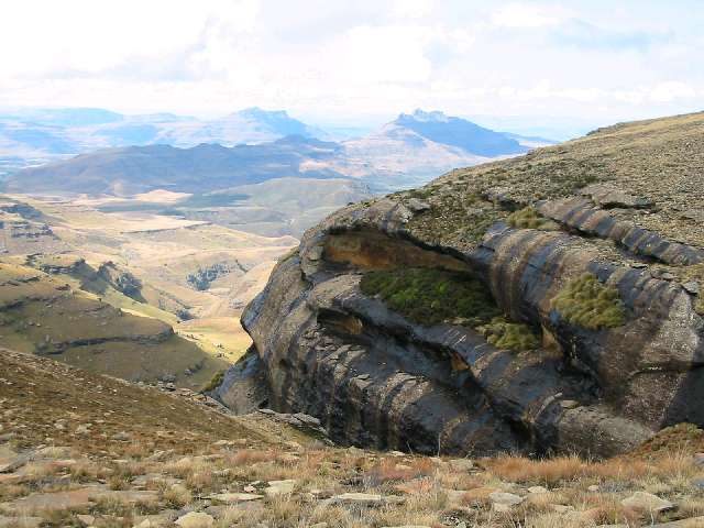 The cave offers a limited but interesting view over the Underberg area.  A walk to the top of the hill behind the cave offers much wider views of the spectacular rock formations in the area.