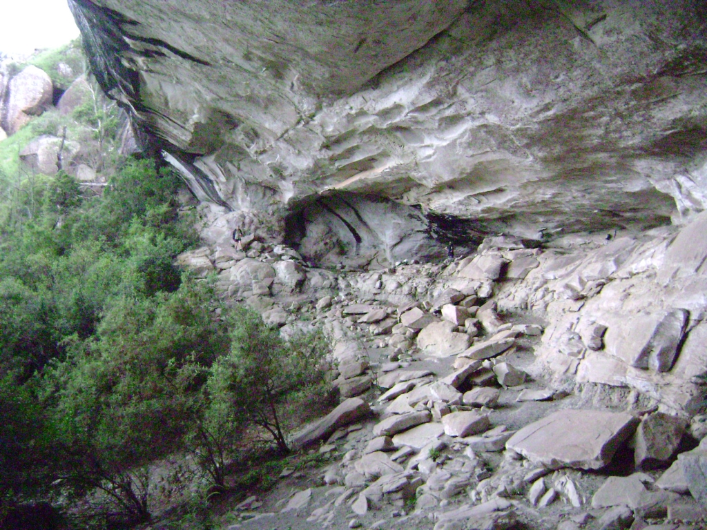Caracal Cave is a very large sandstone overhang, although only a relatively small, elevated part of the total floor area is suitable for sleeping accommodation.