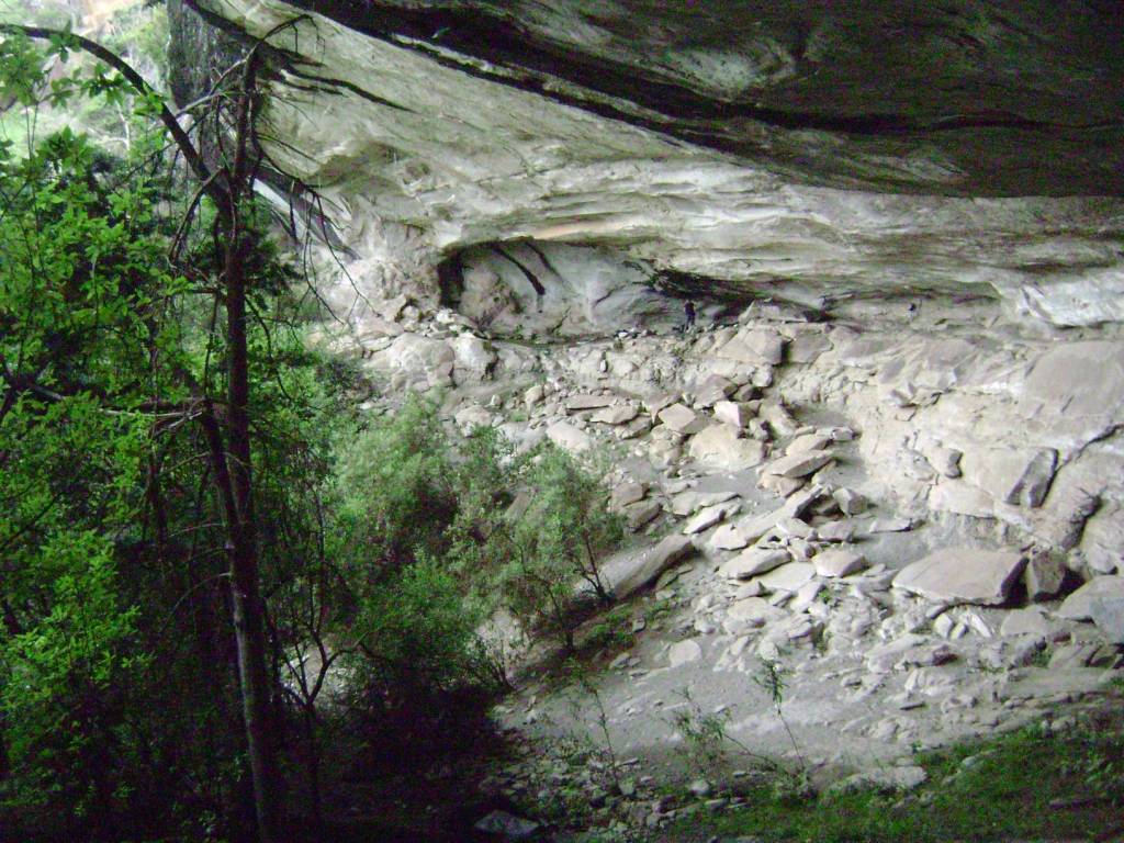 Caracal Cave is a very large sandstone overhang, although only a relatively small, elevated part of the total floor area is suitable for sleeping accommodation.