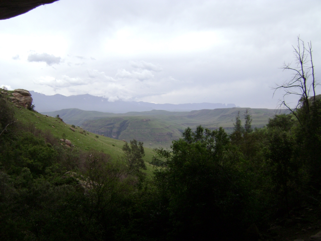 Highmoor Wilderness Area, lower central Drakensberg.  The cave can be reached via a relatively easy walk from the Highmoor office.  Careful map reading may be required to reach it in mist, however.  The Fulton’s Rock art site is within easy walking distance of the cave, but a circular return route to the Highmoor office via this site and the trout dams can provide some more serious exercise for backpackers looking to extend themselves.  A visit to nearby Aasvoëlkrans Cave is also very worthwhile.