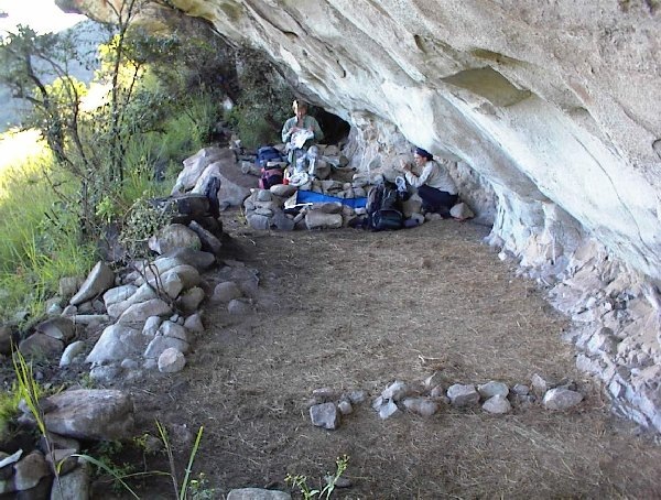 Wonder Valley Cave is perhaps one of the finest caves in the berg, with its only drawback being that running water is not conveniently close by. There are actually two overhangs, the first one being the annex and the second, larger one being the main cave. The floor of the latter is almost perfectly level, with several smaller, walled sleeping areas and one large one.