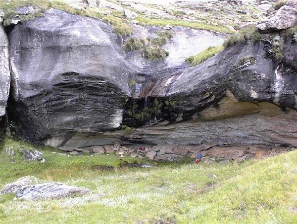 The overhang is deep and the cave’s location in a shallow indent on the side of a hill with fairly open grassland in front of it means that it does not invite wind like many other berg caves.