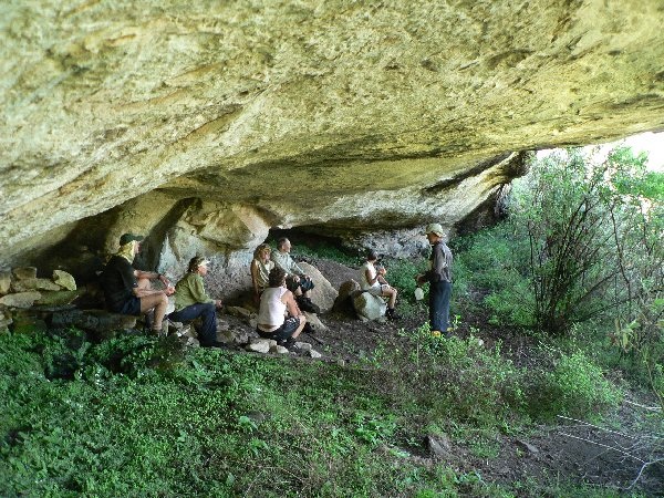 The cave provides very adequate shelter, since the overhang is deep and the bushes in front of it provide good protection from wind and driving rain.