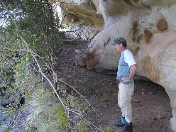 Shelter Cave is a long, low overhang with some nice, level floor areas that can accommodate 6 to 8 hikers comfortably.