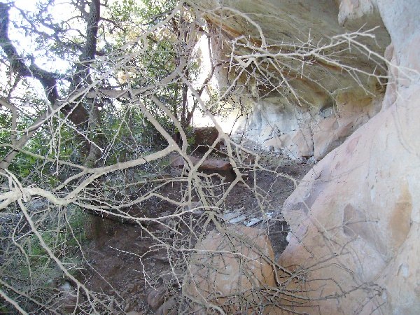 Shelter Cave is a long, low overhang with some nice, level floor areas that can accommodate 6 to 8 hikers comfortably.