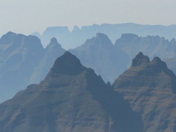 PeaksMnweni Needles Image 71 of 139The Mnweni Needles are in the foreground, with the Cathedral and Cathkin ranges in the middle and far distance respectively. Photo by Peter Hilder